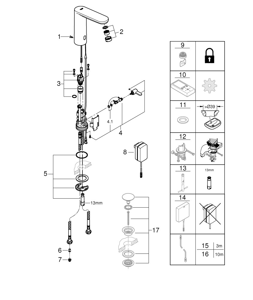 GROHE Infrarot-Waschtisch-Armatur Eurosmart CE 1/2", L-Size, mit Mischung, Netzbetrieb, chrom K19720432