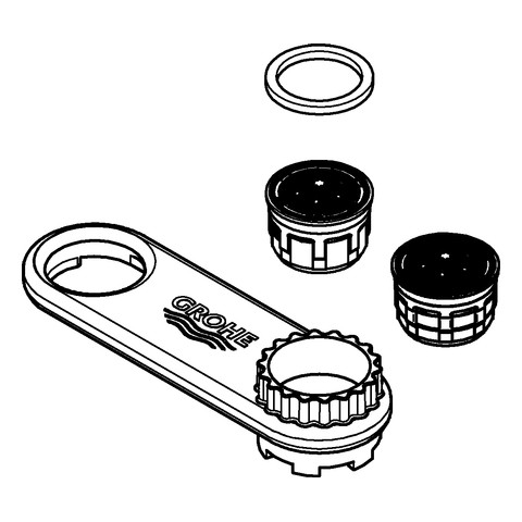 GROHE Mousseur 46711, enthält 2 verschiedene Einsätze: Durchflussklassen A und D, 13.5 l/min und 34.8 - 37.8 l/min bei 3 bar