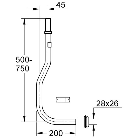 GROHE Spülrohr 50-75 cm, verstellbar, chrom, für Druckspüler