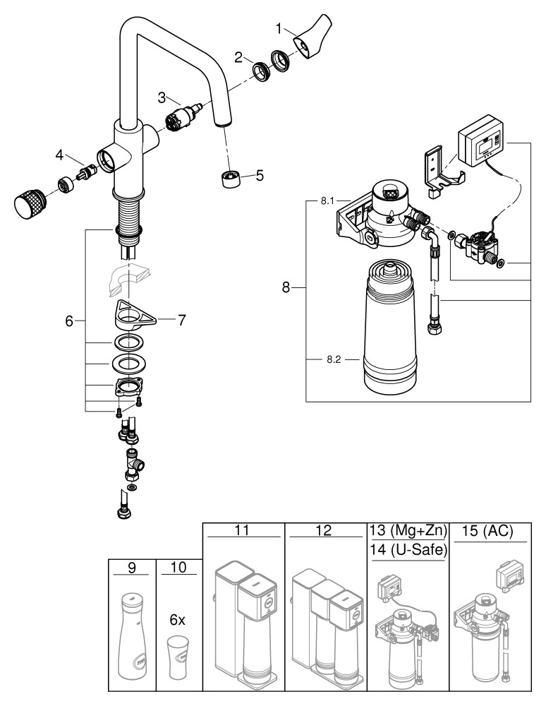 GROHE Spültisch-Einhebelmischer Blue Pure Eurosmart C-Auflauf, Starter Kit, chrom K20548148