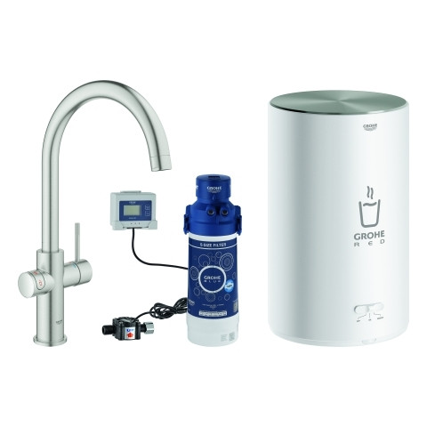 GROHE Spültisch-Einhebelmischer Red Duo C-Auslauf, mit Boiler Größe M, supersteel