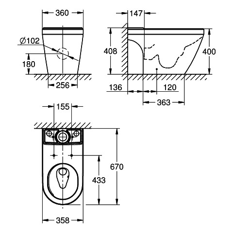 | Mittenabstand WC-Sitz-Befestigung | 155 mm |