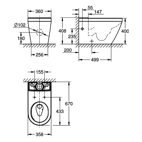 | Mittenabstand WC-Sitz-Befestigung | 155 mm |