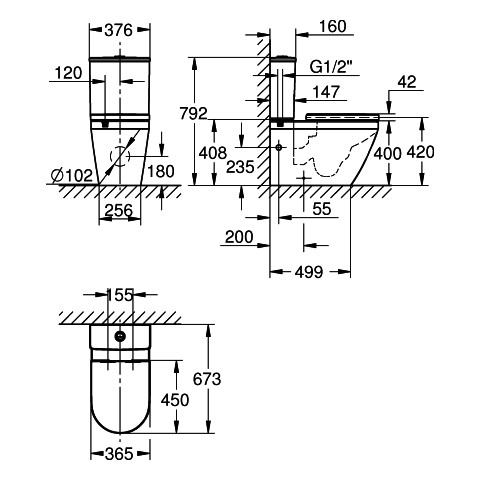| Mittenabstand WC-Sitz-Befestigung | 155 mm |