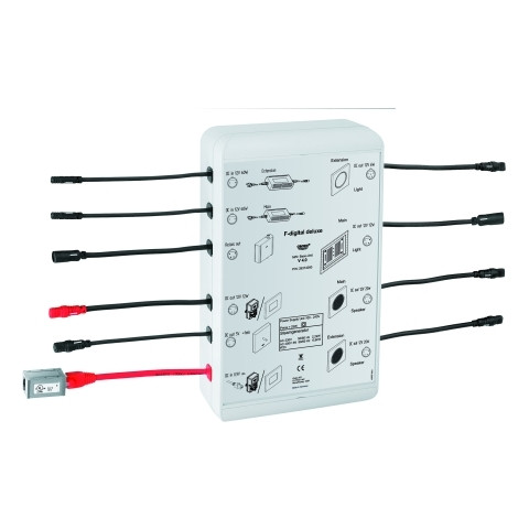 für den Betrieb des Lichtvorhangs der Rainshower 40" AquaSymphony, Deckenbrause, zusätzliche Licht- und Musikmodule können verbunden und angesteuert werden, bestehend aus 2 Steckverbindungen für zwei Musikmodule (36 473 000), 1 Steckverbindung für ein Lichtmodul (36 472 000), 1 Steckverbindung für Lichtvorhang der Rainshower Aqua 40" AquaSymphony (26 863 000), 2 Steckverbindungen für Dampfmodul (29 414 000), mit 1 Steckverbindung für Dampfgenerator und 1 Steckverbindung für Temperaturfühler, 2 Steckverbindungen für Netzteile (pro Netzteil max. vier Verbraucher), 2 Steckverbindungen für die Bluetooth-Empfangseinheit, optionales Sonderzubehör 36 474 000 zum Einbau der Steuereinheit