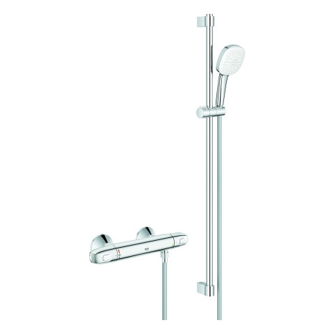 2 Strahlarten (Rain, Jet), bestehend aus: Grohtherm 1000 Thermostat-Brausearmatur (34 814), Tempesta Cube Brausestangenset, 90 cm (26 908)