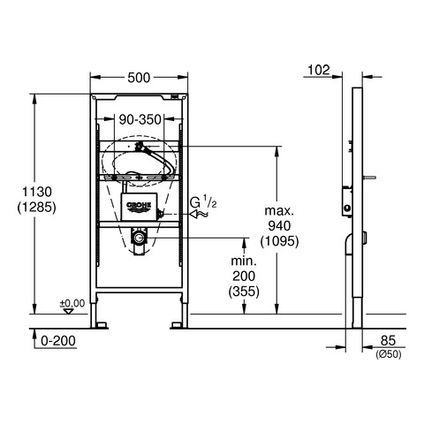 GROHE Urinal-Element Rapid SL 1,13/1,30 m, mit Temperatursensor, Rohbau-Set