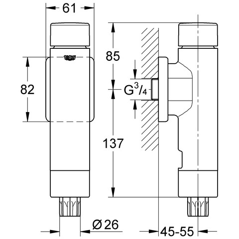 GROHE WC-Druckspüler Rondo A.S. 3/4", ohne Vorabsperrung, 6-9 l einstellbar, chrom