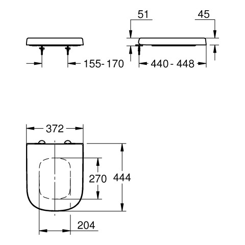 Quick release Funktion, werkzeuglos abnehmbar, aus Duroplast, mit Befestigungsset, Scharniere aus Edelstahl, Montage von oben, kompatibel mit allen Euro Keramik WCs
