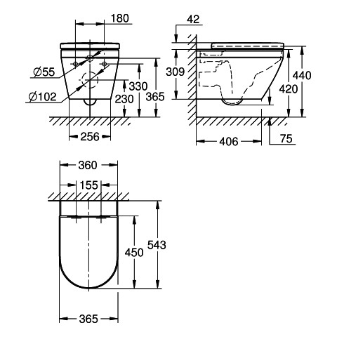 | Mittenabstand WC-Sitz-Befestigung | 155 mm |