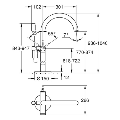 GROHE Wannen-Einhebelmischer Atrio Ausladung 30,1cm, Bodenmontage, supersteel K20547440