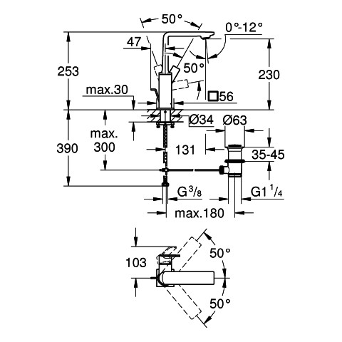 | Aufbauhöhe Unterkante Hahnauslass | 230 mm |
