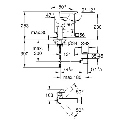 | Aufbauhöhe Unterkante Hahnauslass | 230 mm |