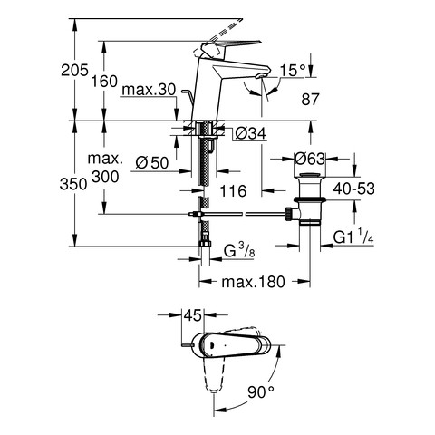 GROHE Waschtisch-Einhebelmischer Eurodisc Cosmopolitan 1/2", S-Size, mit Ablaufgarnitur, Mittelstellung kalt, chrom