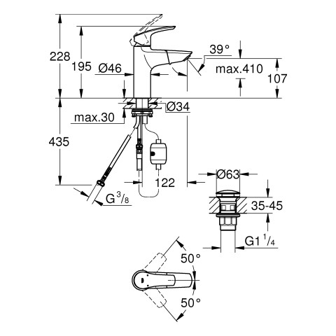 | Aufbauhöhe Unterkante Hahnauslass | 107 mm |