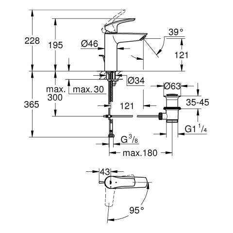 | Aufbauhöhe Unterkante Hahnauslass | 121 mm |