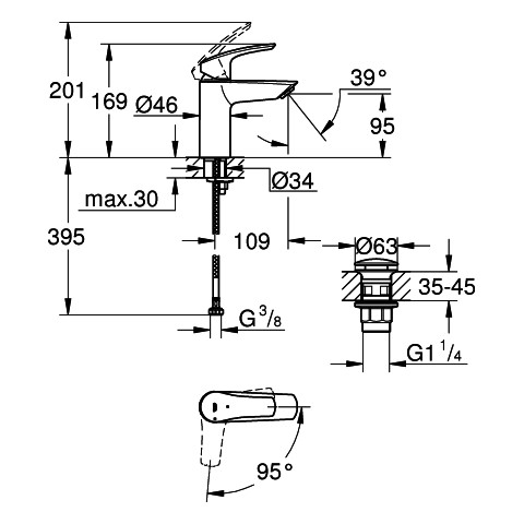 | Aufbauhöhe Unterkante Hahnauslass | 95 mm |