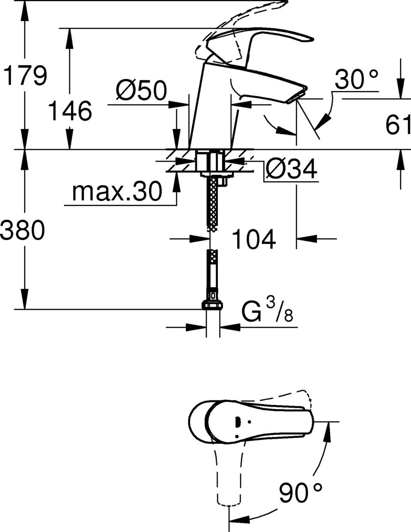 GROHE Waschtisch-Einhebelmischer Eurosmart 1/2", S-Size, glatter Körper, ohne Ablaufgarnitur, Mittelstellung kalt, chrom K20547850