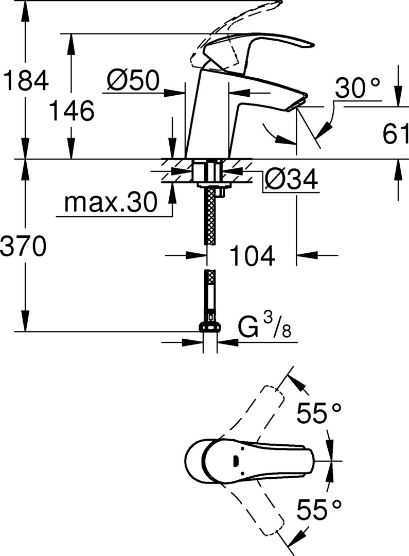 GROHE Waschtisch-Einhebelmischer Eurosmart 1/2", S-Size, glatter Körper, ohne Ablaufgarnitur, chrom K20547852