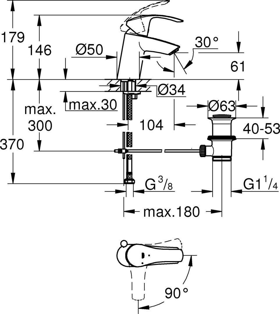 GROHE Waschtisch-Einhebelmischer Eurosmart chrom, S-Size, mit Ablaufgarnitur, mit Temperaturbegrenzer