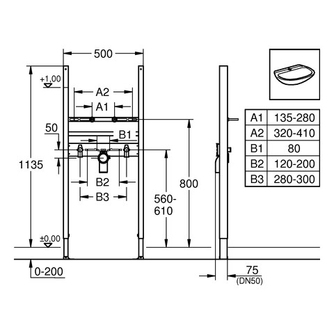 GROHE Waschtisch-Element Rapid SL Projekt BH 1,13 m, für Einlocharmatur