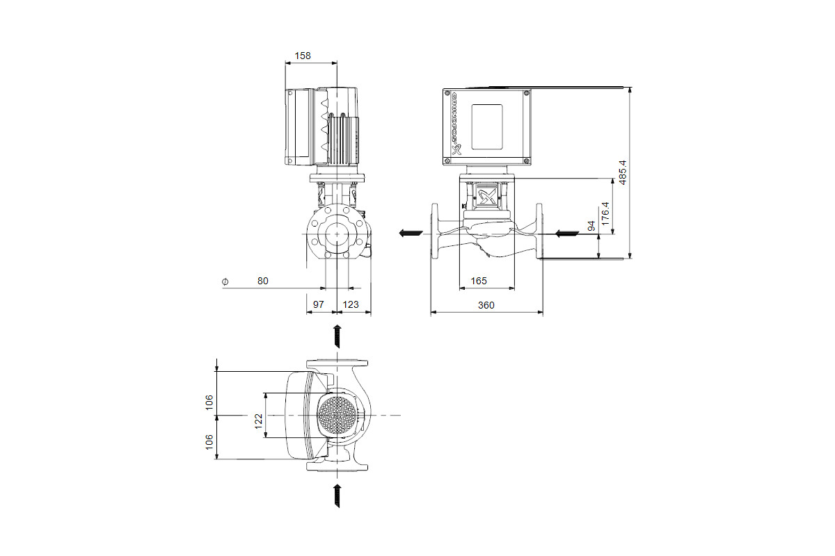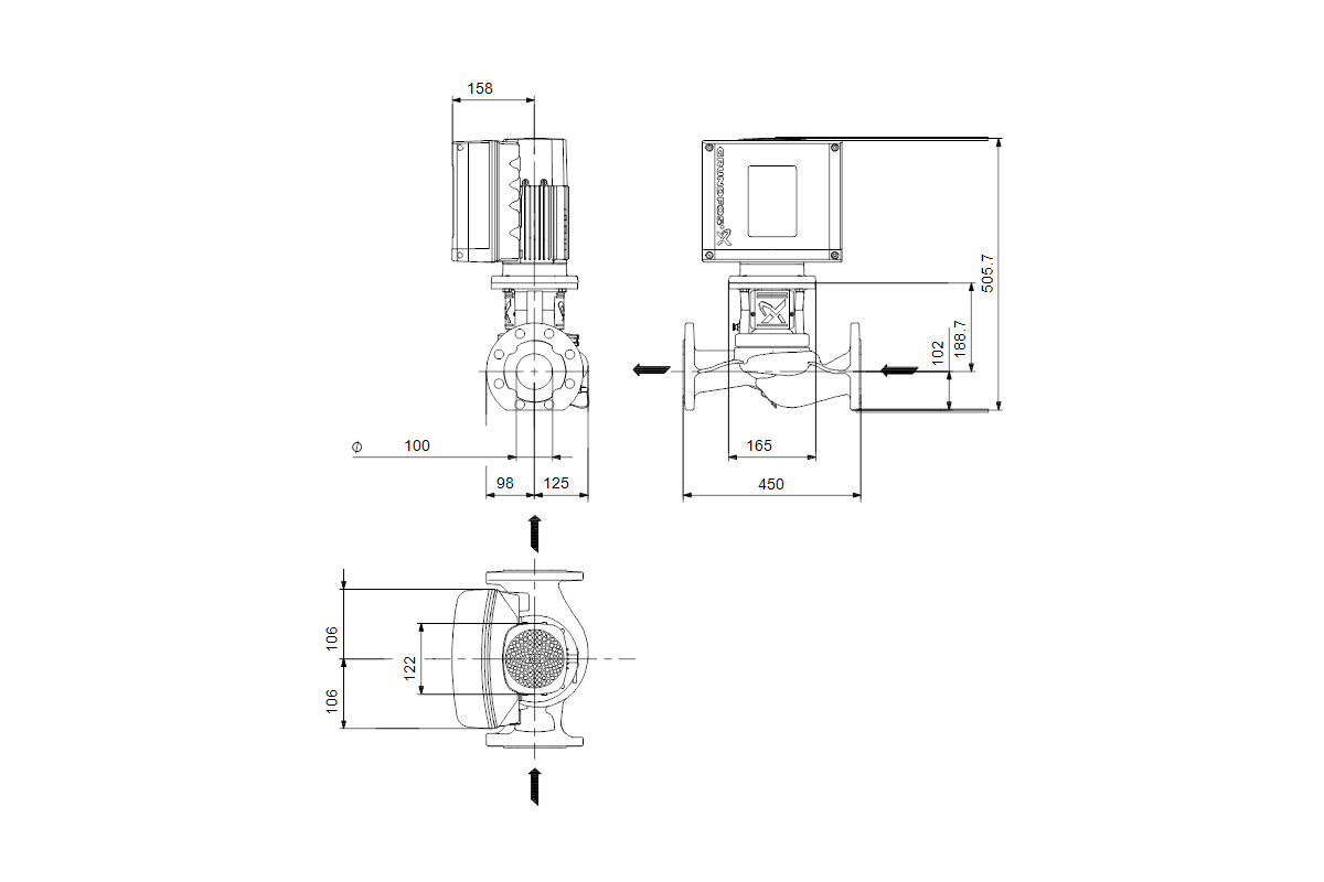 GRUNDFOS Elektr. ger. Trockenläuferpumpe TPE2_80-150-N-A-F-A-BQQE PN16 3x400V