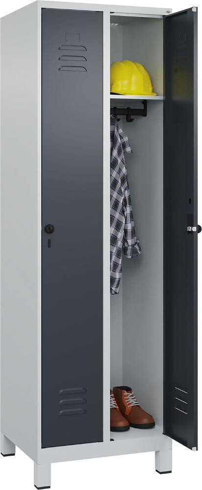 Garderobenschrank Classic B610xT500xH1850 mm RAL 7035, 2 Abteile mit 150 mm hohen Füßen CP 118926