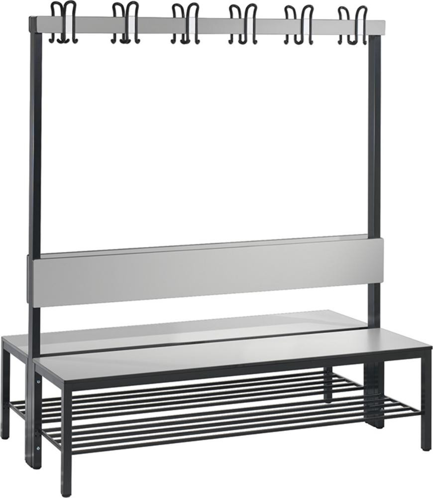 • Sitzfläche, Rückenlehne, Hakenleiste: Vollkernplatte (HPL) 13 mm, mit Dekoroberfläche