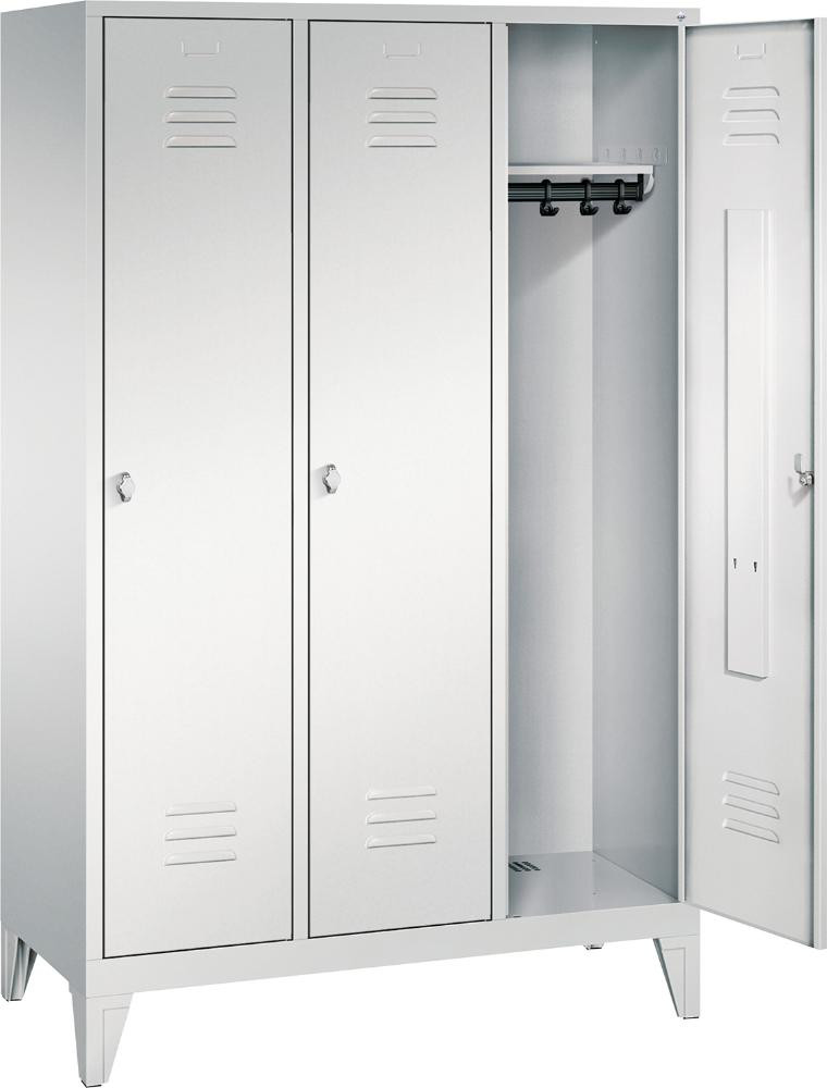 Garderobenschrank Classic B1200xT500xH1850 mm RAL 7035, 3 Abteile mit 150 mm hohen Füßen CP