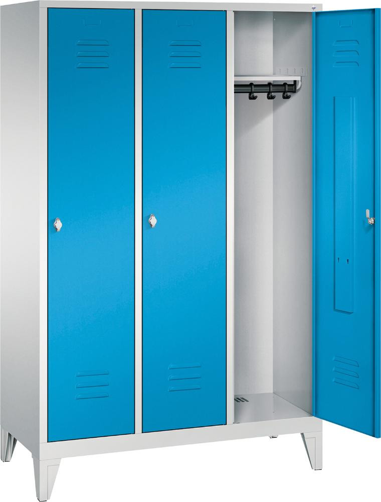 Garderobenschrank Classic B1200xT500xH1850 mm RAL 7035/5012, 3 Abteile mit 150 mm hohen Füßen CP