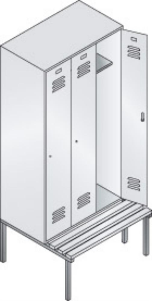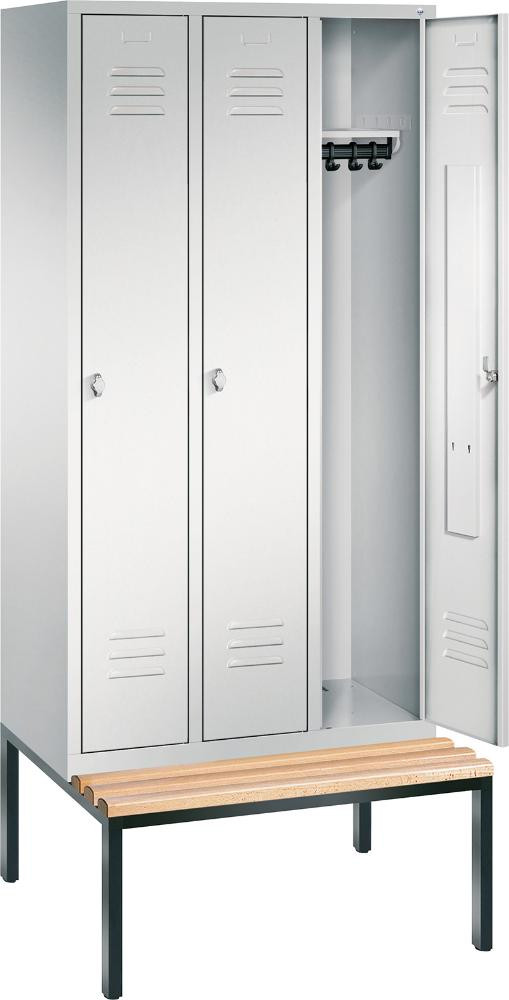 Garderobenschrank Classic B900xT500xH2090 mm RAL 7035, 3 Abteile mit untergeb. Sitzbank CP