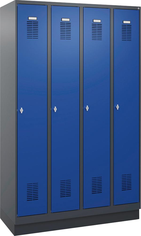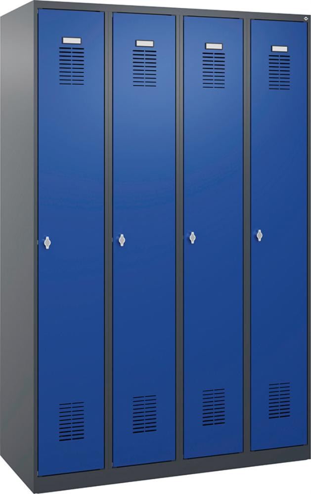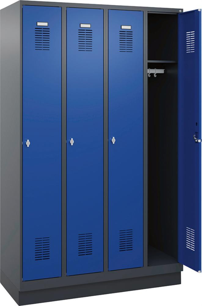 Garderobenschrank FORUM 4 Abteile RAL 7016/5010 Sockel 7035 mit Sockel Selbstmontage