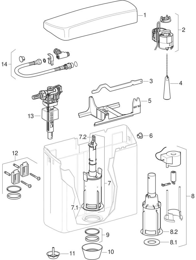 Geberit AP123 AP-Spülkasten 1-Mengen-Spülung, für Fernauslösung: weiß-alpin