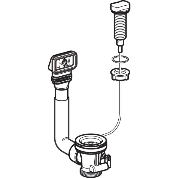 für Spültische mit Drehbetätigung, Sichtteile verchromt, Kunststoff, bestehend aus Überlauf, Stopfen verchromt, Ablaufsieb verchromt, Kabelzug und Drehgriff