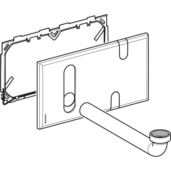 zum Abdecken der Serviceöffnung von Waschtischarmaturen mit UP-Funktionsbox und UP-Geruchsverschluss, bestehend aus Abdeckplatte, Befestigungsrahmen, Anschlussbogen Ø 32 mm, Flachdichtung und Befestigungsmaterial