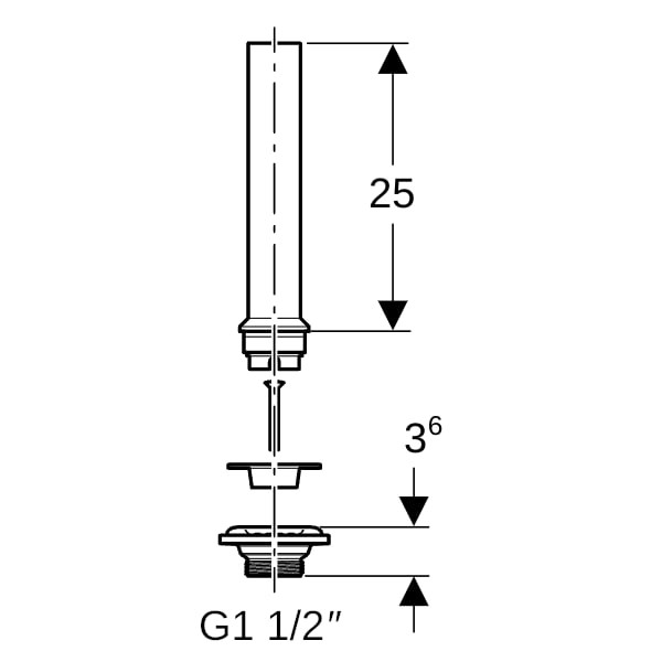 Geberit Ablauf-Ventil 1 1/2", mit Standrohr, für Ausgussbecken, ohne Überlauf