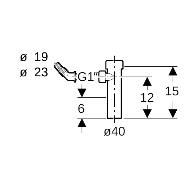 Geberit Anschlussstutzen Ø 40 mm, mit Quetschverschraubung und Winkelschlauchtülle, weiß