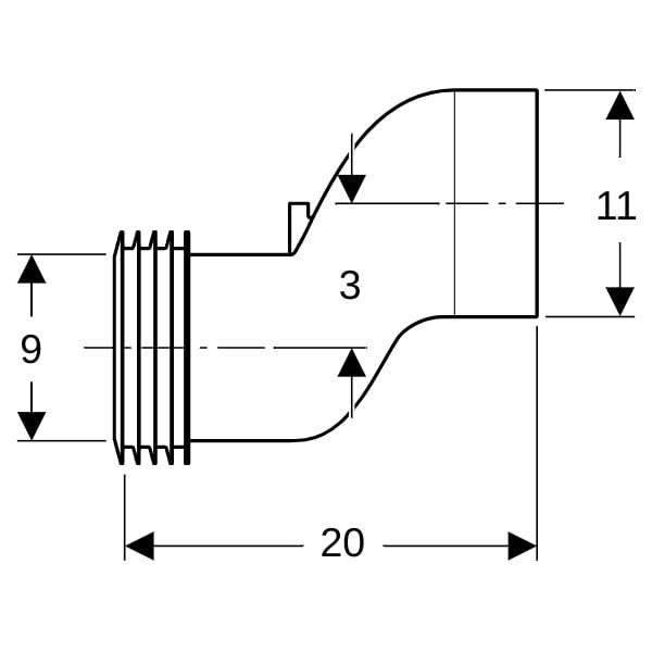 zum Ausgleichen von Versatz zwischen WC-Anschluss und Wandabläufen, bestehend aus Anschlussstutzen aus PP, Ø 90 mm, 2x Manschetten aus EPDM, Ø 90/110 mm