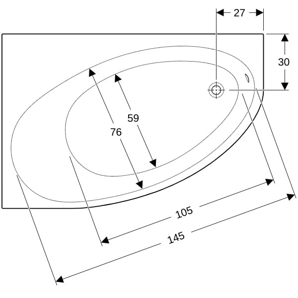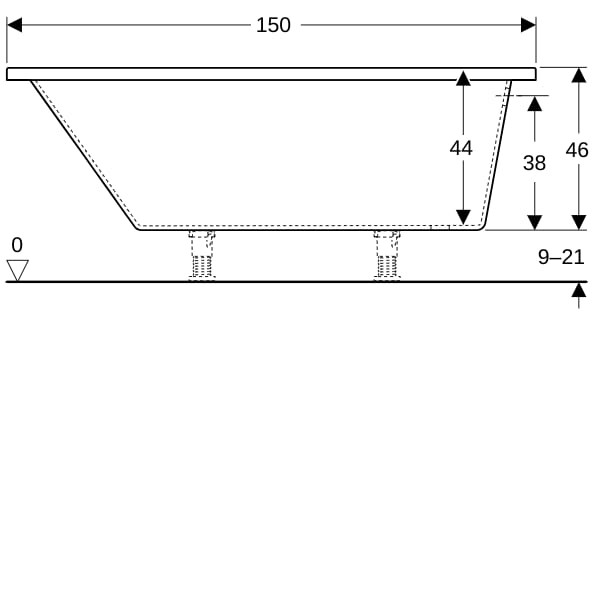 Geberit Badewanne Renova 150 x 100 cm, asymmetrisch, rechts, Abgang Fußende, weiß
