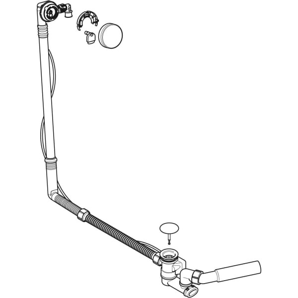 Geberit Badewannenablauf d52 mit Drehbetätigung und Zulauf, mit Fertigbauset, Länge 73cm, hochglanz-verchromt