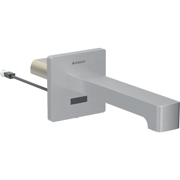 Geberit Brenta Waschtischarmatur Wandmontage: Optik Edelstahl / gebürstet, easy-to-clean-beschichtet, L=22cm