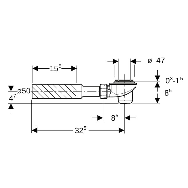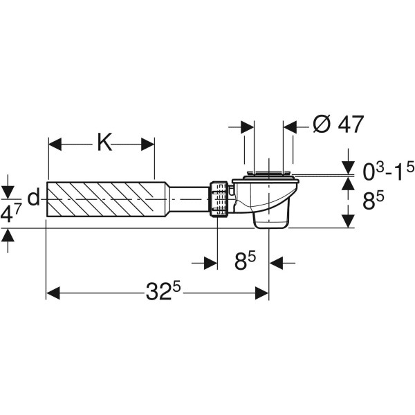 Geberit Duschwannen-Ablauf d52 ohne Ablaufdeckel, d= 50mm, Anschlussbogen K7924018