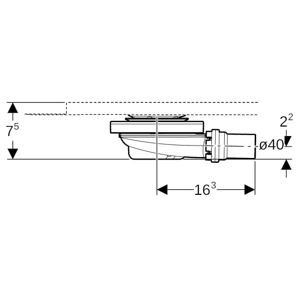 Geberit Duschwannenablauf Setaplano für Duschfläche, Sperrwasserhöhe 30mm, 40 mm