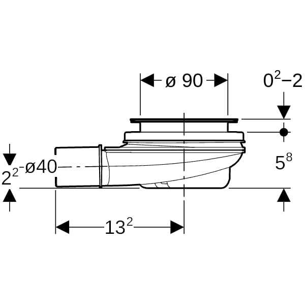 Geberit Duschwannenablauf d90 ohne Überlauf, Sperrwasserhöhe 30mm, Abgang aus PP