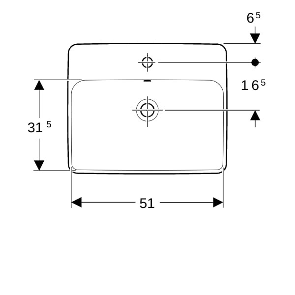 Geberit Einbau-Waschtisch VariForm 55x45cm, mit Hahnloch, mit Überlauf, rechteckig, Unterseite glasiert / weiß