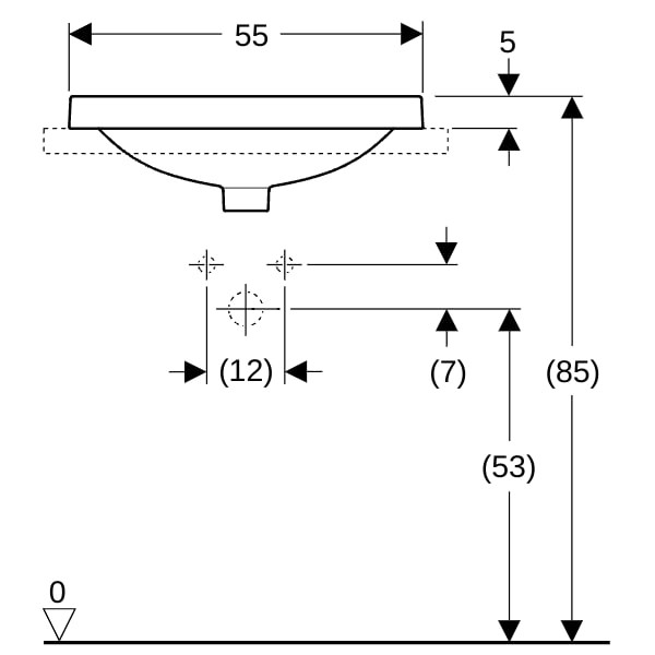 Geberit Einbau-Waschtisch VariForm 55x45cm, mit Hahnloch, mit Überlauf, rechteckig, weiß