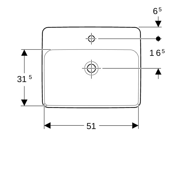 Geberit Einbau-Waschtisch VariForm 55x45cm, mit Hahnloch, ohne Überlauf, rechteckig, weiß