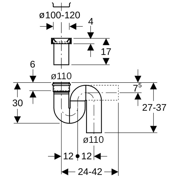 | Rohraußendurchmesser Abflussrohr | 110 mm |