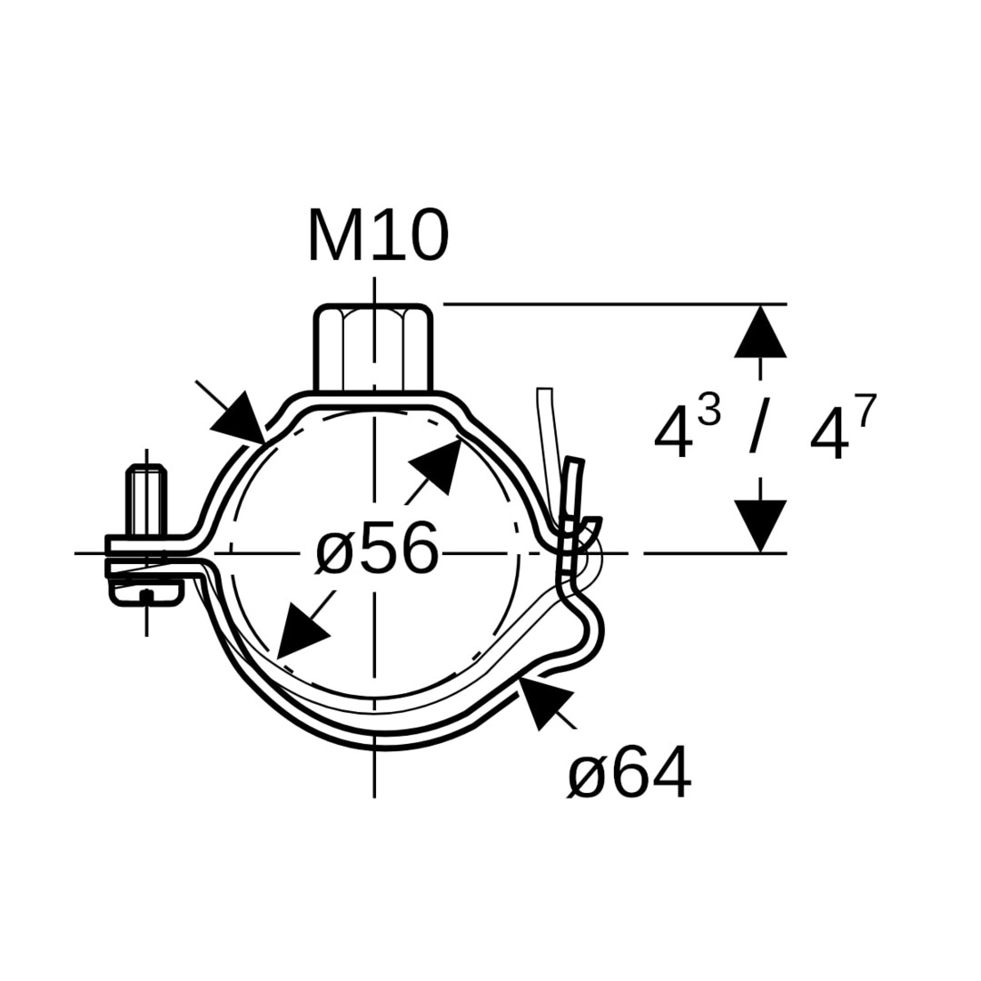 Geberit Rohrschelle DN 56, mit Gewindemuffe M10, verstellbar, verzinkt K7966943