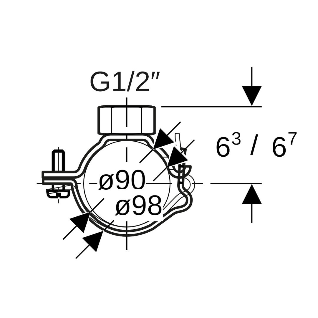 Geberit Rohrschelle DN 90, mit Gewindemuffe G 1/2, verstellbar, verzinkt K7967030